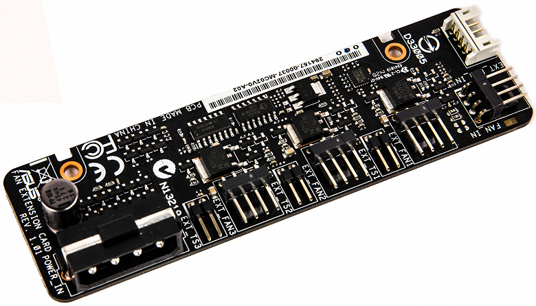 Но даже если такого количества вентиляторов и термодатчиков окажется недостаточно, то можно вспомнить, что в комплекте к плате поставляется и дополнительная карта Fan Extension Card, которая позволяет подключить три дополнительных вентилятора и три термодатчика. Отметим, что управлять вентиляторами, подключенными к плате Fan Extension Card, можно через настройки UEFI BIOS.
